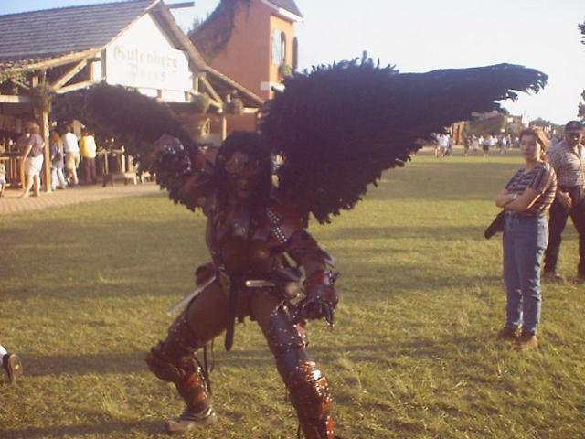 The Texas Renaissance Festival is an excellent recreation of Medievil times with many unique characters playing perfect roles. You can find Barbarians, Jesters, Knights, Village People, Maidens, Robin Hood and his merry men, Mud Wrestlers, The Falconer, Squires, Belly Dancers (They are my favorite), Gypsies, Witches, Wenches, and just plain Freaks. There are way to many of these characters to name but from beautiful women to big burly men, you can find them all. Just watch out for the Kissing Bandit who may come and steal a kiss from your woman. |